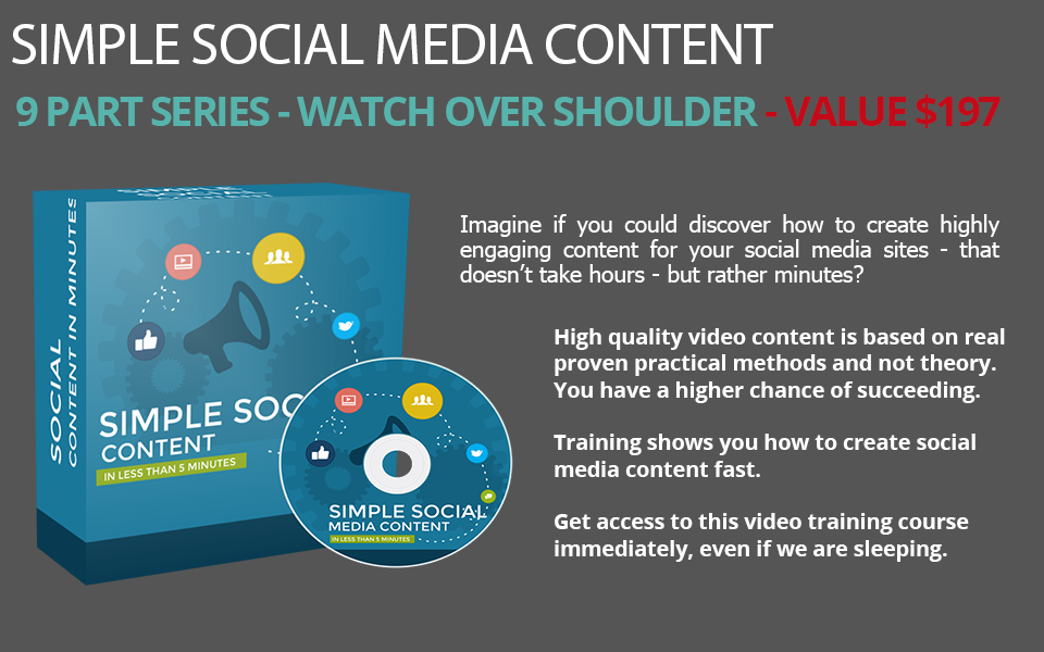 This specific training course was designed to help you watch over my shoulder, step-by-step, click by click, to ensure that you are able to successfully and effectively create simple content quick.